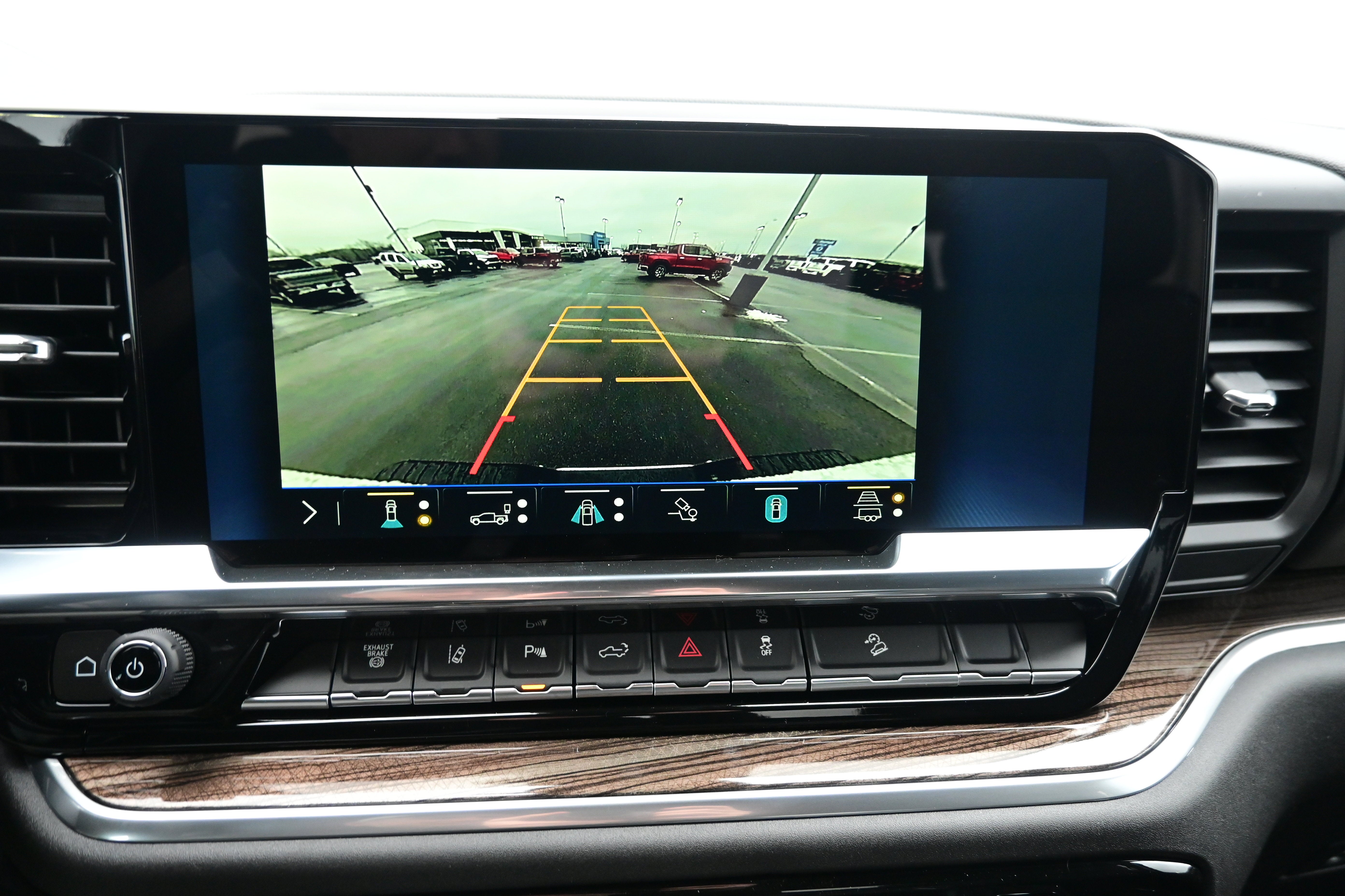 - Allows driver to see inside the cargo bed on the infotainment display to help with 5th wheel or gooseneck hitching and to check cargo