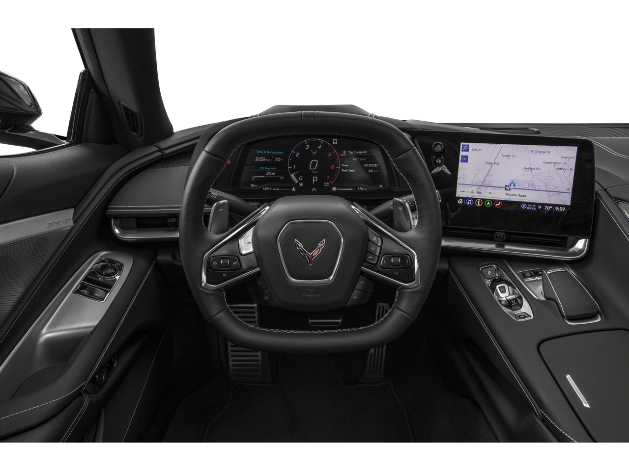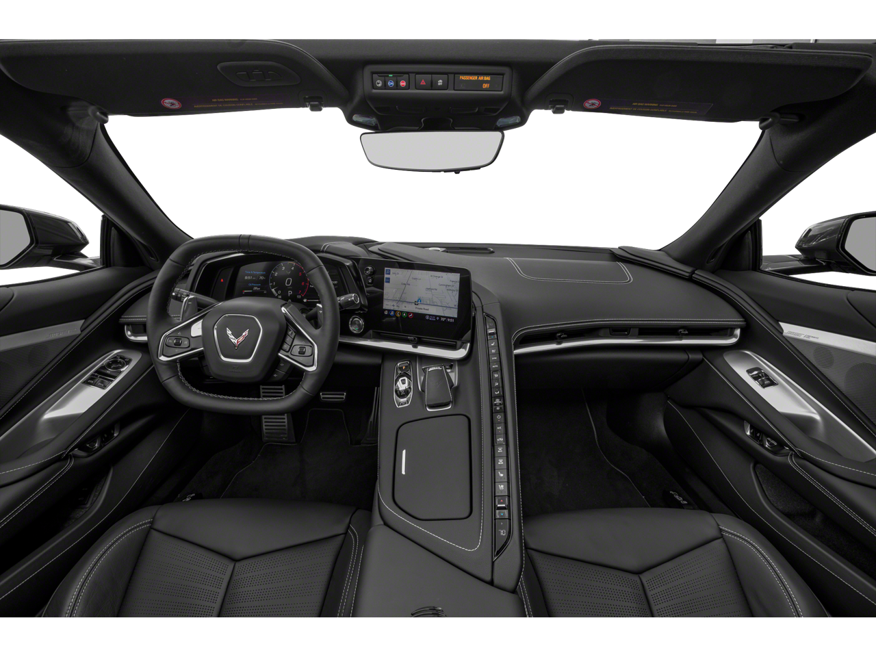 Memory Driver & Passenger Convenience Package, Preferred Equipment Group 2LT (2 Cargo Nets, Driver Power Bolster Seat Adjuster, Electrical Theft Deterrent System, HD Front & Rear Vision Cameras, Head-Up Display, Heated & Vented Driver & Passenger Seats, Heated Steering Wheel, Passenger Power Bolster Seat Adjuster, Performance Data & Video Recorder, Power Driver Lumbar Control Seat Adjuster, Power Passenger Lumbar Control Seat Adjuster, Power-Adjustable Outside Heated Mirrors, Rear Camera Mirror, Rear Cross Traffic Alert, Side Blind Zone Alert, Universal Home Remote, Vehicle Inclination Theft Deterrent Sensor, Vehicle Interior Movement Theft Deterrent Sensor, and Wireless Charging for Devices), 14 Speakers, 4-Wheel Disc Brakes, 8-Way Power Driver Seat Adjuster, 8-Way Power Passenger Seat Adjuster, ABS brakes, Air Conditioning, Alloy wheels, AM/FM radio: SiriusXM, Apple CarPlay/Android Auto, Auto-dimming door mirrors, Auto-dimming Rear-View mirror, Automatic temperature control, Body-Color Removable Roof Panel, Bose Performance Series Sound System w/14 Speakers, Brake assist, Bumpers: body-color, Compass, Delay-off headlights, Driver door bin, Driver vanity mirror, Dual front impact airbags, Dual front side impact airbags, Electronic Stability Control, Emergency communication system: OnStar and Chevrolet connected services capable, Four wheel independent suspension, Front anti-roll bar, Front Bucket Seats, Front Center Armrest, Front dual zone A/C, Front reading lights, Fully automatic headlights, Garage door transmitter, GT1 Bucket Seats, HD Radio, Heads-Up Display, Heated door mirrors, Heated front seats, Heated steering wheel, Illuminated entry, Leather Shift Knob, Leather steering wheel, Low tire pressure warning, Memory seat, Mulan Lthr Seating Surfaces w/Perforated Inserts, Navigation System, Occupant sensing airbag, Outside temperature display, Overhead console, Panic alarm, Passenger door bin, Passenger vanity mirror, Power door mirrors, Power driver seat, Power passenger seat, Power steering, Power windows, Premium audio system: Chevrolet Infotainment 3 Premium, Radio data system, Radio: Chevrolet Infotainment 3 Premium System, Rear anti-roll bar, Rear window defroster, Remote keyless entry, Security system, SiriusXM Radio, Speed control, Speed-sensing steering, Sport steering wheel, Steering wheel memory, Steering wheel mounted audio controls, Tachometer, Telescoping steering wheel, Tilt steering wheel, Traction control, Trip computer, Turn signal indicator mirrors, Variably intermittent wipers, Ventilated front seats, Voltmeter, and Wheels: 19" x 8.5" Fr/20" x 11" Rr Bright Silver.