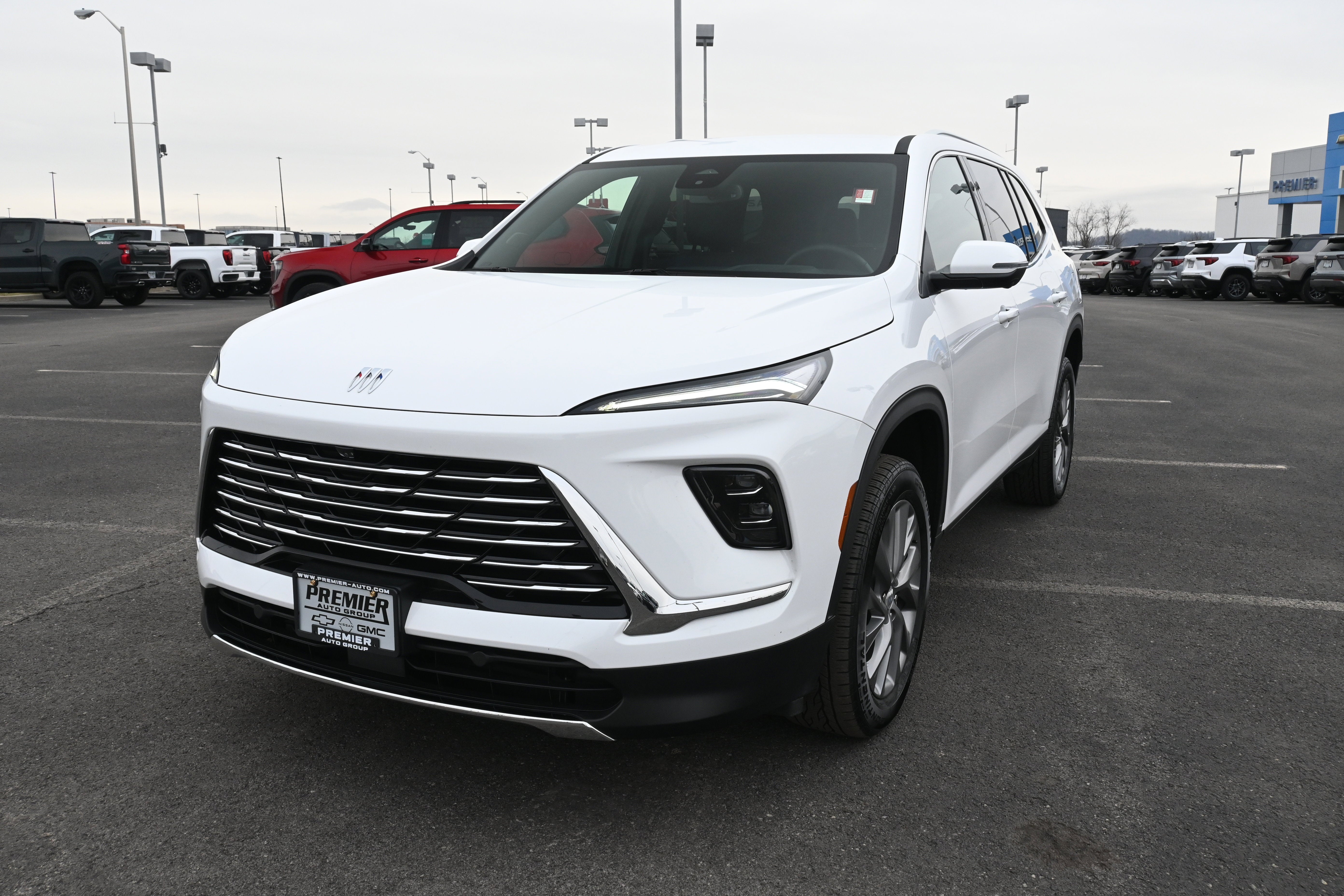 Front Mounting License Plate Bracket Package, Preferred Equipment Group 1SD, AWD, 12 Speakers, 3rd row seats: split-bench, 4-Wheel Disc Brakes, ABS brakes, Air Conditioning, Alloy wheels, AM/FM radio: SiriusXM with 360L, Auto High-beam Headlights, Auto-dimming door mirrors, Auto-dimming Rear-View mirror, Automatic temperature control, Bose Premium 12-Speaker Audio System, Brake assist, Bumpers: body-color, Compass, Delay-off headlights, Deleted OnStar Basics, Driver 4-Way Power Lumbar Seat Adjuster, Driver 8-Way Power Seat Adjuster, Driver door bin, Driver vanity mirror, Dual front impact airbags, Dual front side impact airbags, Electronic Stability Control, Emergency communication system: OnStar and Buick connected services capable, Four wheel independent suspension, Front anti-roll bar, Front Bucket Seats, Front Center Armrest, Front dual zone A/C, Front Passenger 4-Way Power Lumbar Seat Adjuster, Front Passenger 6-Way Power Seat Adjuster, Front reading lights, Fully automatic headlights, Heated door mirrors, Heated Driver and Front Passenger Seats, Heated front seats, Heated steering wheel, Illuminated entry, Leather steering wheel, Leatherette Seat Trim, Low tire pressure warning, Navigation System, Occupant sensing airbag, Outside temperature display, Overhead airbag, Overhead console, Panic alarm, Passenger door bin, Passenger vanity mirror, Power door mirrors, Power driver seat, Power Liftgate, Power passenger seat, Power steering, Power windows, Premium audio system: Buick Infotainment System, Radio data system, Radio: Infotainment Center, Rear air conditioning, Rear anti-roll bar, Rear reading lights, Rear side impact airbag, Rear window defroster, Rear window wiper, Remote keyless entry, Security system, SiriusXM with 360L Trial Subscription, Speed control, Speed-sensing steering, Spoiler, Steering wheel mounted audio controls, Tachometer, Telescoping steering wheel, Tilt steering wheel, Traction control, Trip computer, Turn signal indicator mirrors, Variably intermittent wipers, Voltmeter, Wheels: 20" Alloy with Medium Android Finish, Wireless Apple CarPlay, and Wireless Google Android Auto.