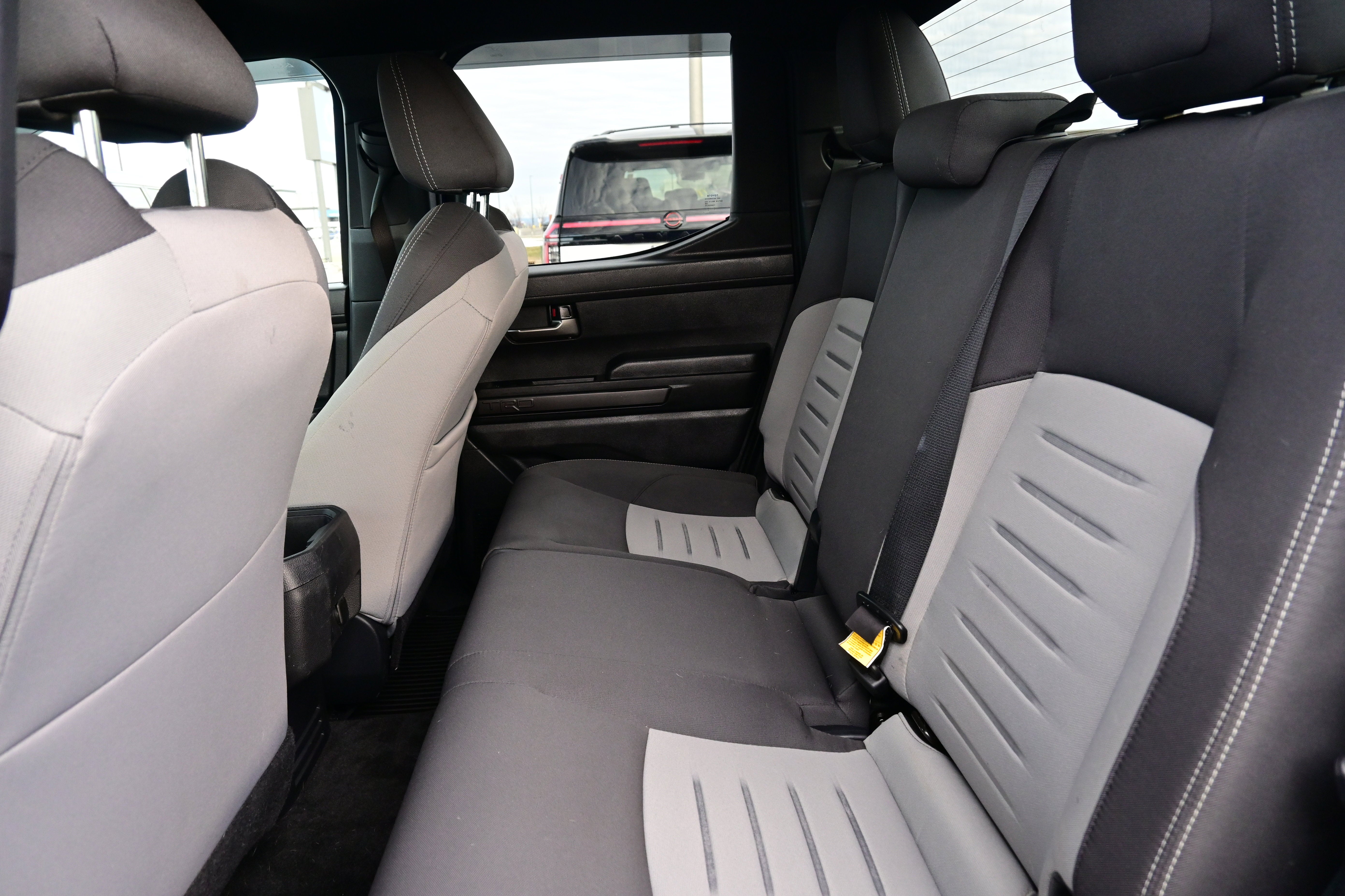 4WD, 3.583 Axle Ratio, 4-Wheel Disc Brakes, 6 Speakers, ABS brakes, Air Conditioning, Alloy wheels, AM/FM radio: SiriusXM, Anti-whiplash front head restraints, Apple CarPlay/Android Auto, Auto High-beam Headlights, Auto-dimming Rear-View mirror, Automatic temperature control, Brake assist, Bumpers: body-color, Driver door bin, Driver vanity mirror, Dual front impact airbags, Dual front side impact airbags, Electronic Stability Control, Emergency communication system: Safety Connect (1-year trial), Exterior Parking Camera Rear, Fabric Seat Trim, Four wheel independent suspension, Front anti-roll bar, Front Bucket Seats, Front Center Armrest, Front fog lights, Front reading lights, Fully automatic headlights, Heated door mirrors, Illuminated entry, Knee airbag, Leather Shift Knob, Leather steering wheel, Low tire pressure warning, Occupant sensing airbag, Outside temperature display, Overhead airbag, Overhead console, Panic alarm, Passenger door bin, Passenger vanity mirror, Power door mirrors, Power steering, Power windows, Radio: 8" Toyota Audio Multimedia, Rear step bumper, Rear window defroster, Remote keyless entry, Security system, Speed control, Speed-sensing steering, Split folding rear seat, Steering wheel mounted audio controls, Tachometer, Telescoping steering wheel, Tilt steering wheel, Traction control, Trip computer, Turn signal indicator mirrors, Variably intermittent wipers, and Wheels: 18" TRD Sport Alloy.